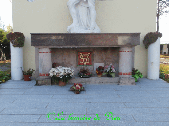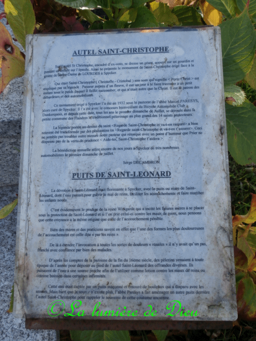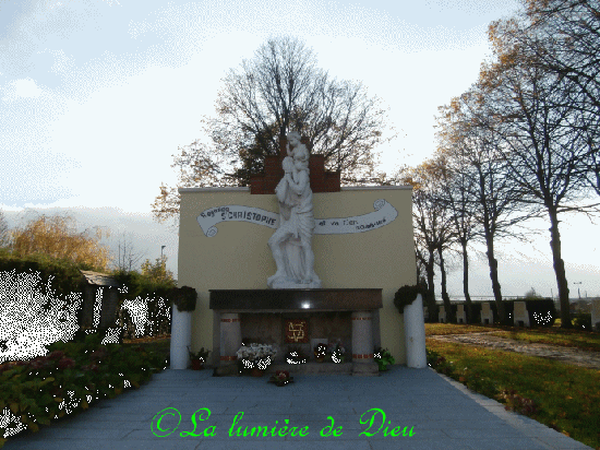 Le monument de Saint Christophe est érigé face à la grotte de Notre-Dame de Lourdes à Spycker.