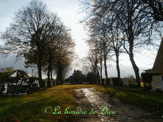 Les anciens banc de béton, démolis au cours de la guerre 39/45 par la chute de l'église dynamitée, avaient été offertes par M.Daniel DEKEISTER et Lucien BRYSSELBOUT. Ces bancs ont été remplacés depuis.