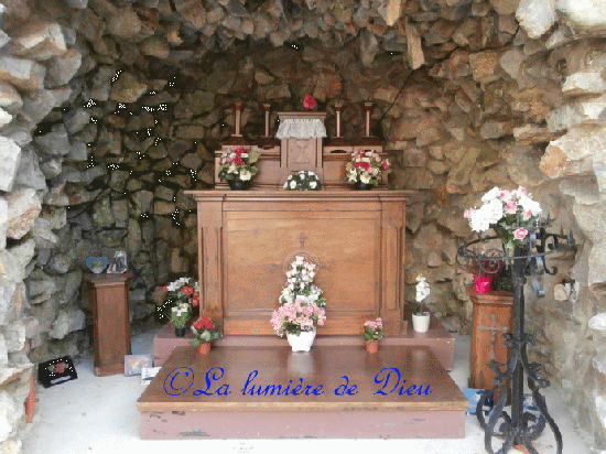 Autre fait marquant : au cours de la dernière guerre, quand notre église fut dynamitée, s'écroulant sur le cimetière et le terrain de la Grotte, rien n'est tombé sur la construction de pierres. Une seule trace d'éclat d'obus a été découverte sur le pied de la statue de la Sainte Vierge. Ce qui peut laisser perplexes les incroyants, ou conforter les croyants dans leur foi, prouvant si besoin en était que les miracles existent.